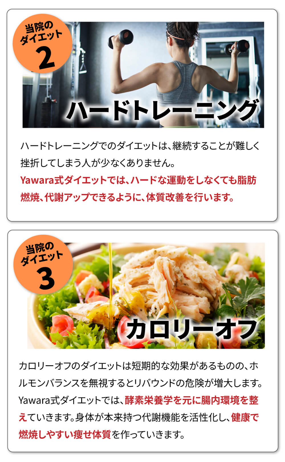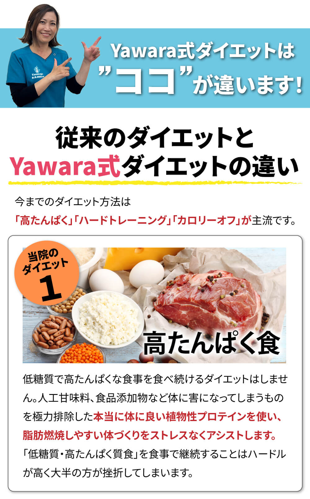 これらの栄養学×運動療法を、ひとり一人に合わせて作るものがYawara式ダイエットとなります。