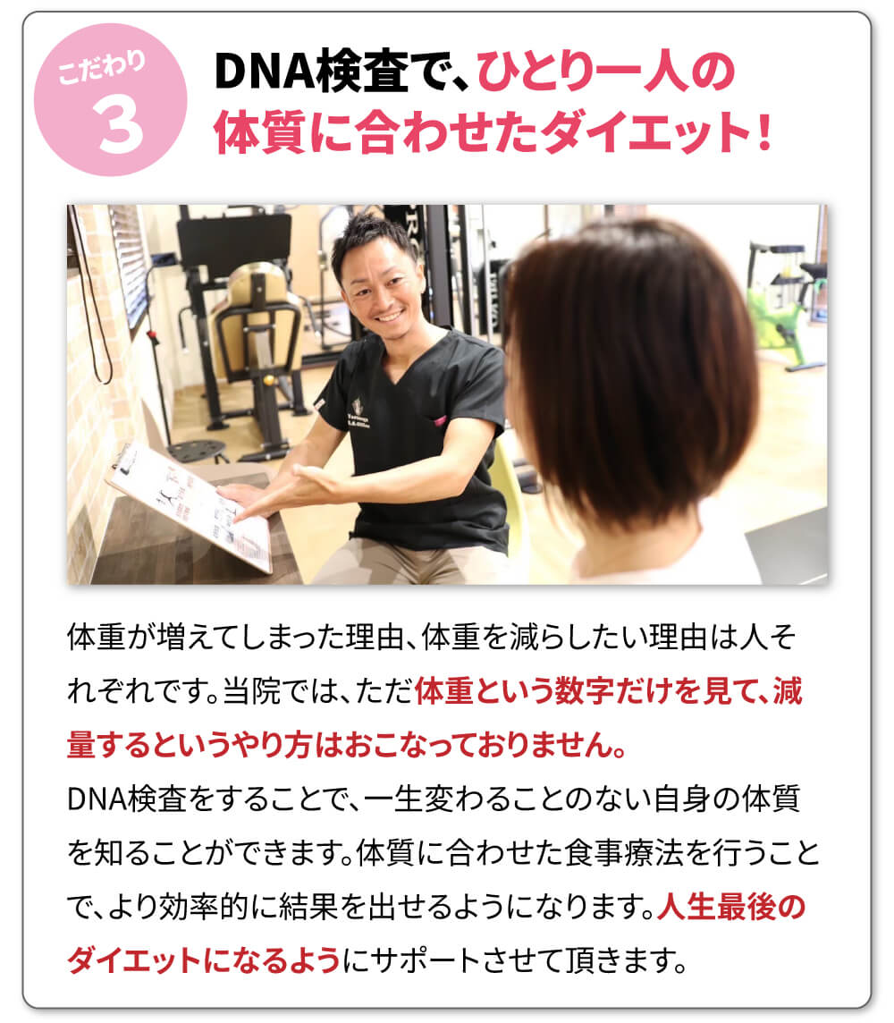 さらに食事指導においては、栄養学(酵素栄養学・分子栄養学)も取り入れることで、あらゆる体質の方にアドバイスできるように備えております。