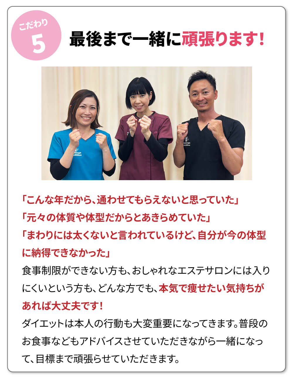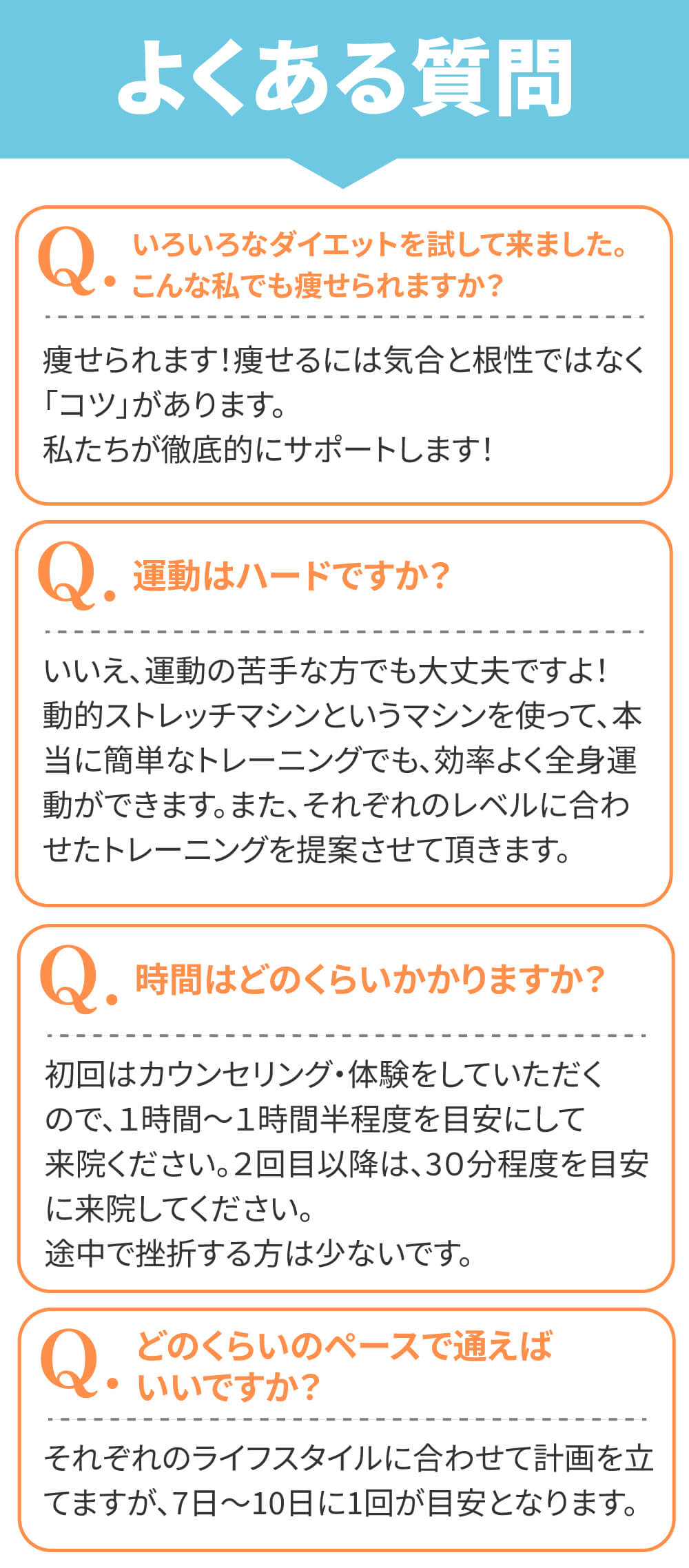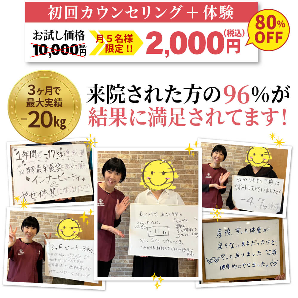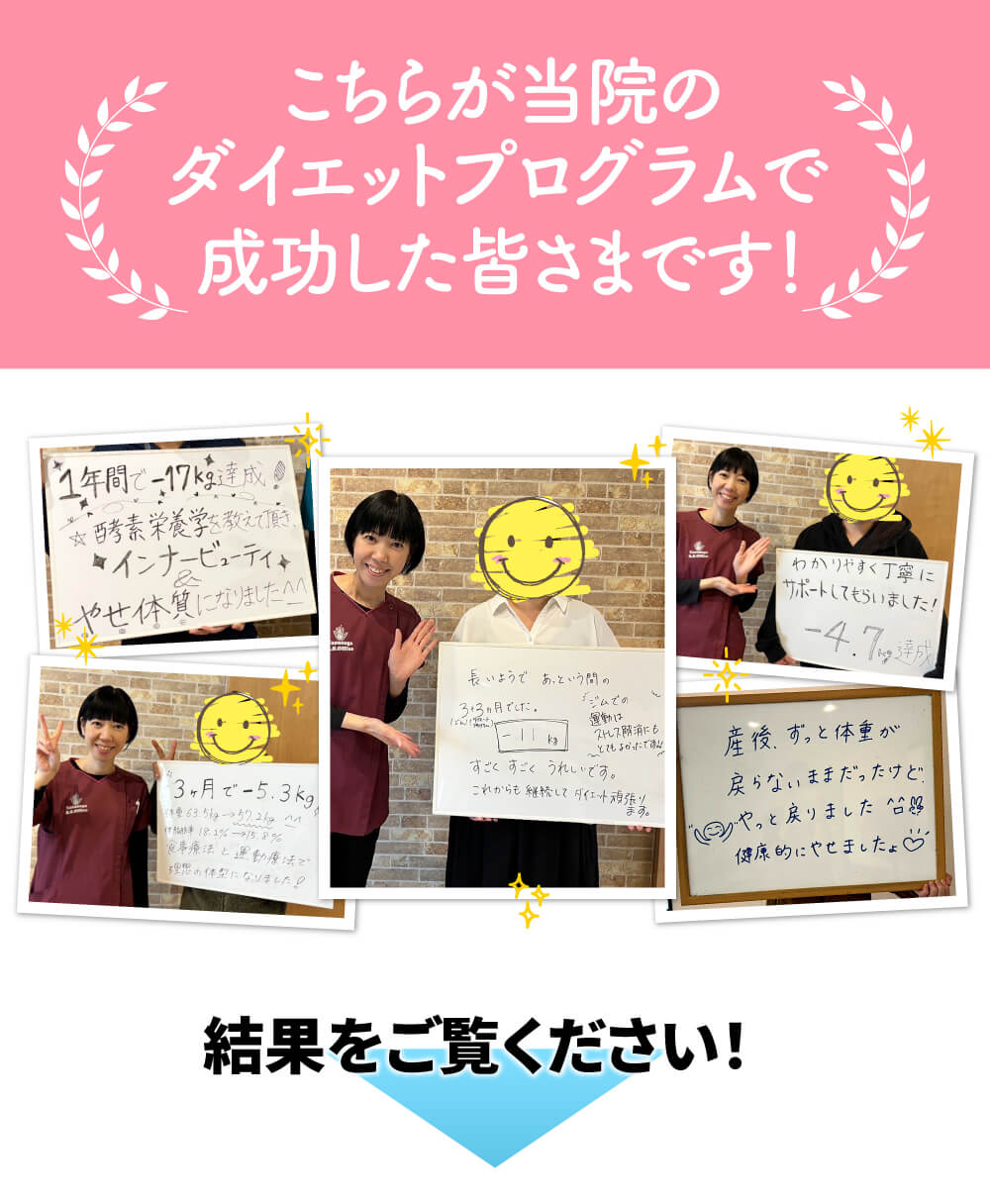 運動療法と正しい知識に基づいたサポートで、あなたのダイエット成功のサポートをします。